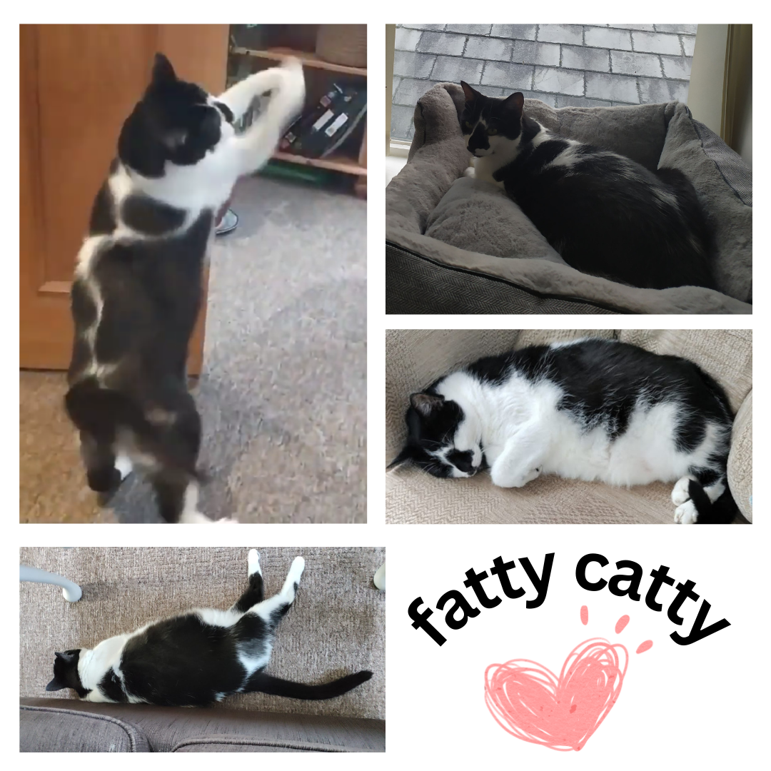 We set to work. Our fatty catty was going to be transformed. He was going to run around and play. He was going to fit into a regular cat bed and not need the large dog bed we had gotten him.